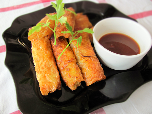 Sunt convinsă că cei mai mulţi dintre voi au gustat celebrele pacheţele de primăvară chinezești și au fost încântaţi de gustul lor și textura lor. Primăvară fiind, mi-am amintit de ele și cu toate că nu am pătruns vreodată în bucătăria vreunui restaurant chinezesc, mi-am permis să reproduc pachetelele, așa cum mi le-am imaginat eu. Mie mi-au plăcut la nebunie, fie-mii deloc, cică nu au carne și nici dulci nu-s, rezultă că n-are rost să-și bată capu’ cu ele. Bărbatu-meu a zis că eu nu pot să frig câte ar mânca el dinastea. Au fost pe gustul lui, deci.